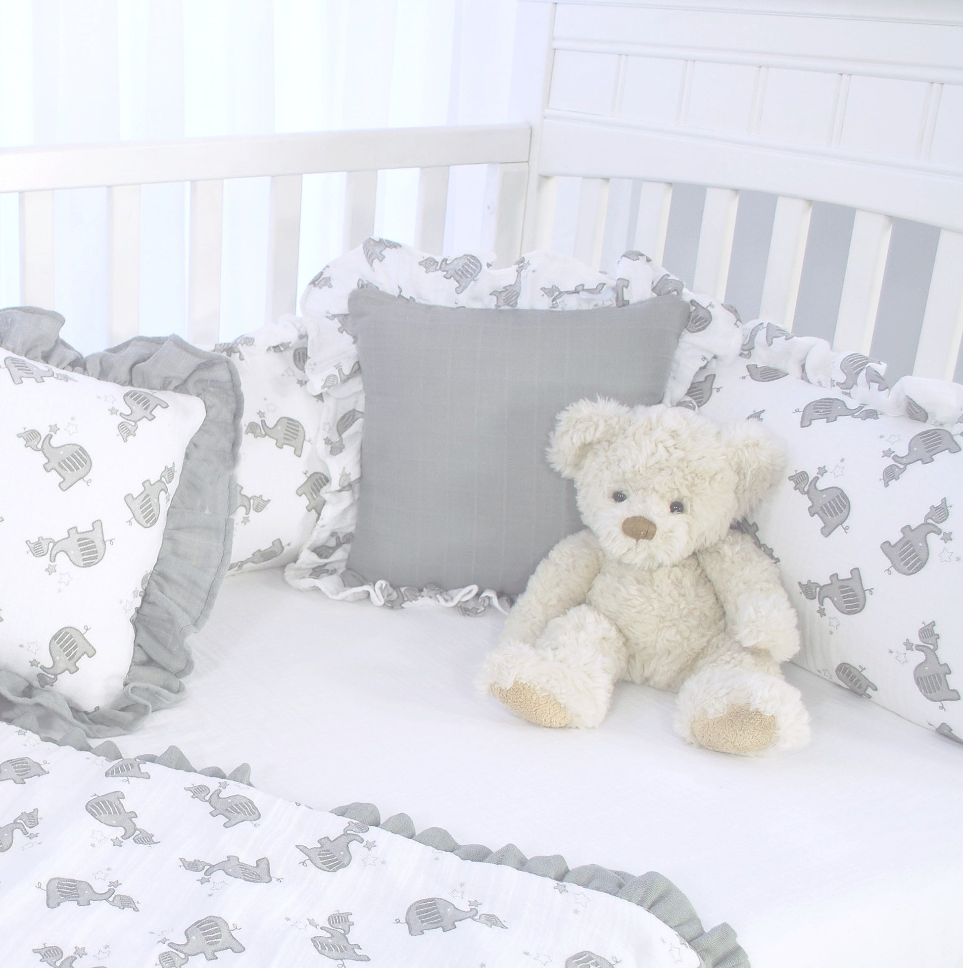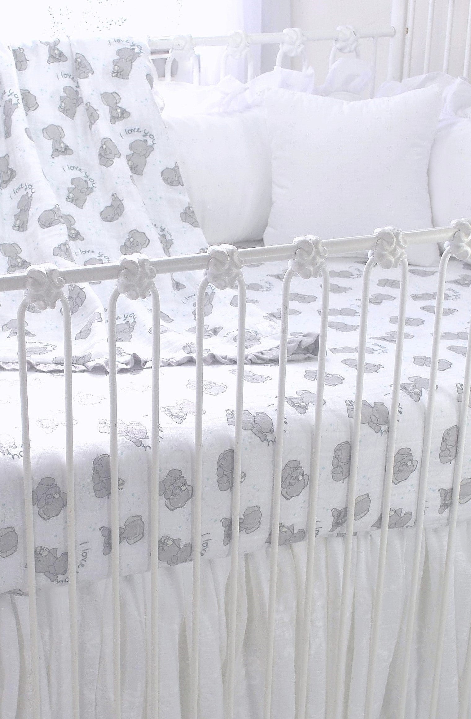 Elephant Tales is an adorable cotton nursery crib bedding set.