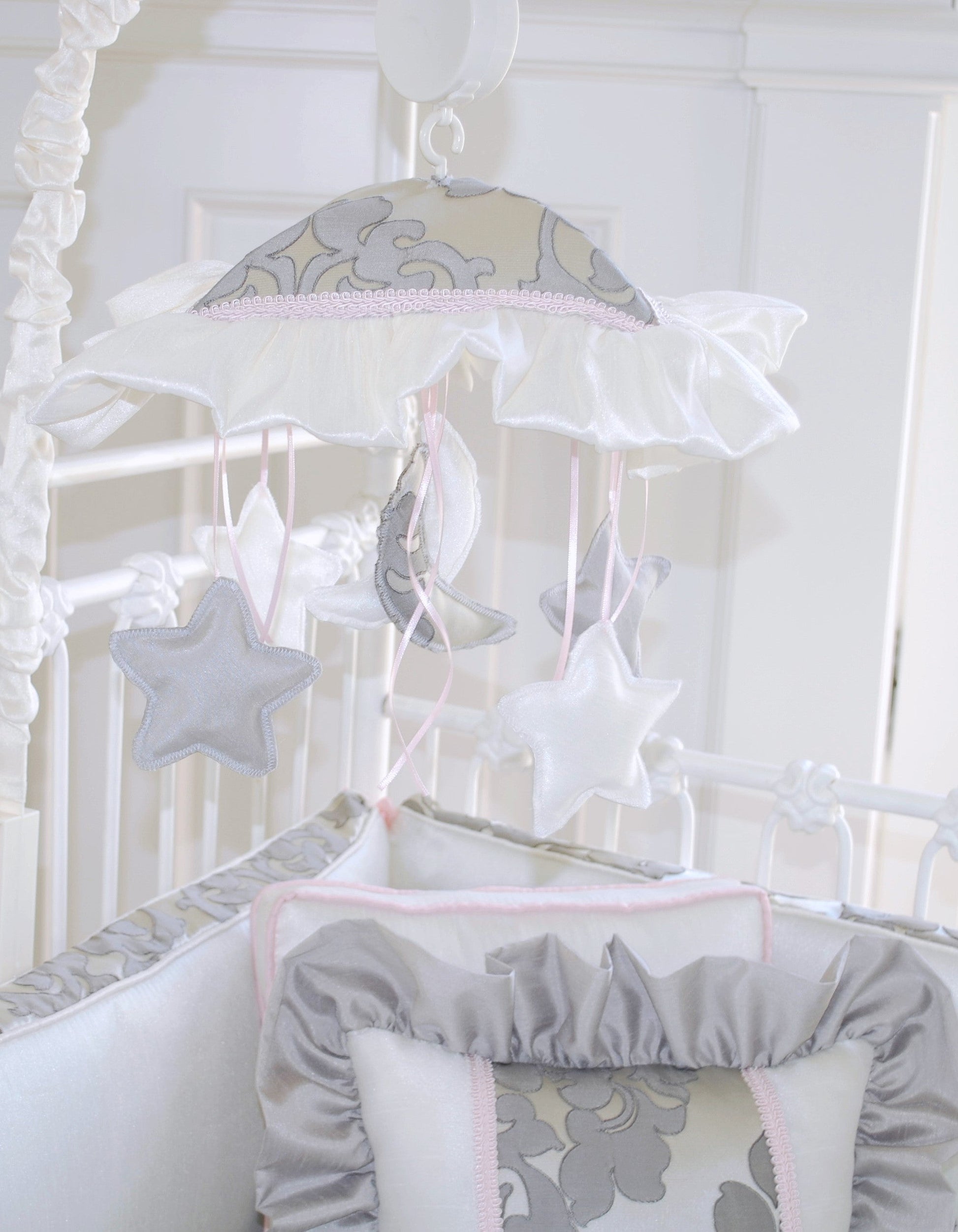 The complete LuLu collection has an array of coordinating accessories including; baby blanket, crib sheet, crib skirt, accent pillows, musical mobile, basket liner, lampshade, window valance, curtains, diaper stacker, nursery hamper, and rail guard cover.