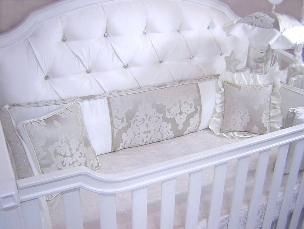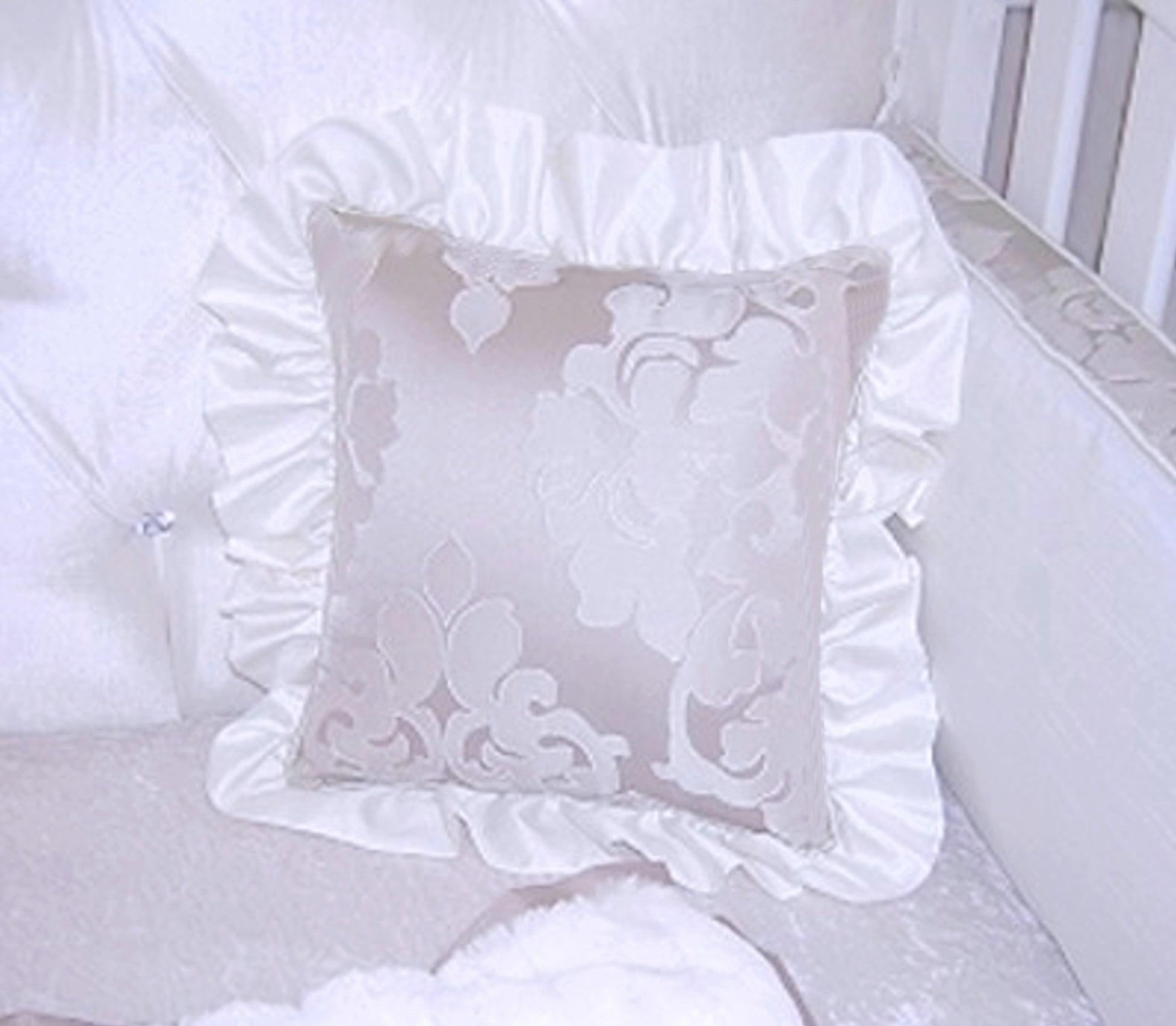 Moon Petal's nursery collection includes this beautiful jacquard bolster pillow. Perfect as an accent for gliders and rockers.