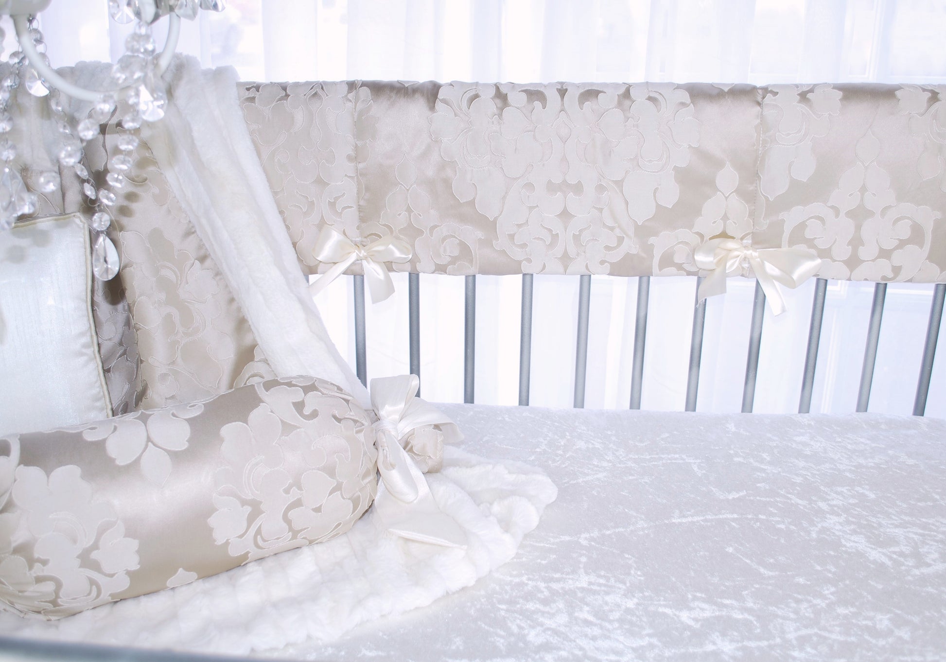 Moon Petal's nursery collection includes this beautiful double cord ivory dupioni accent pillow with jacquard edges.