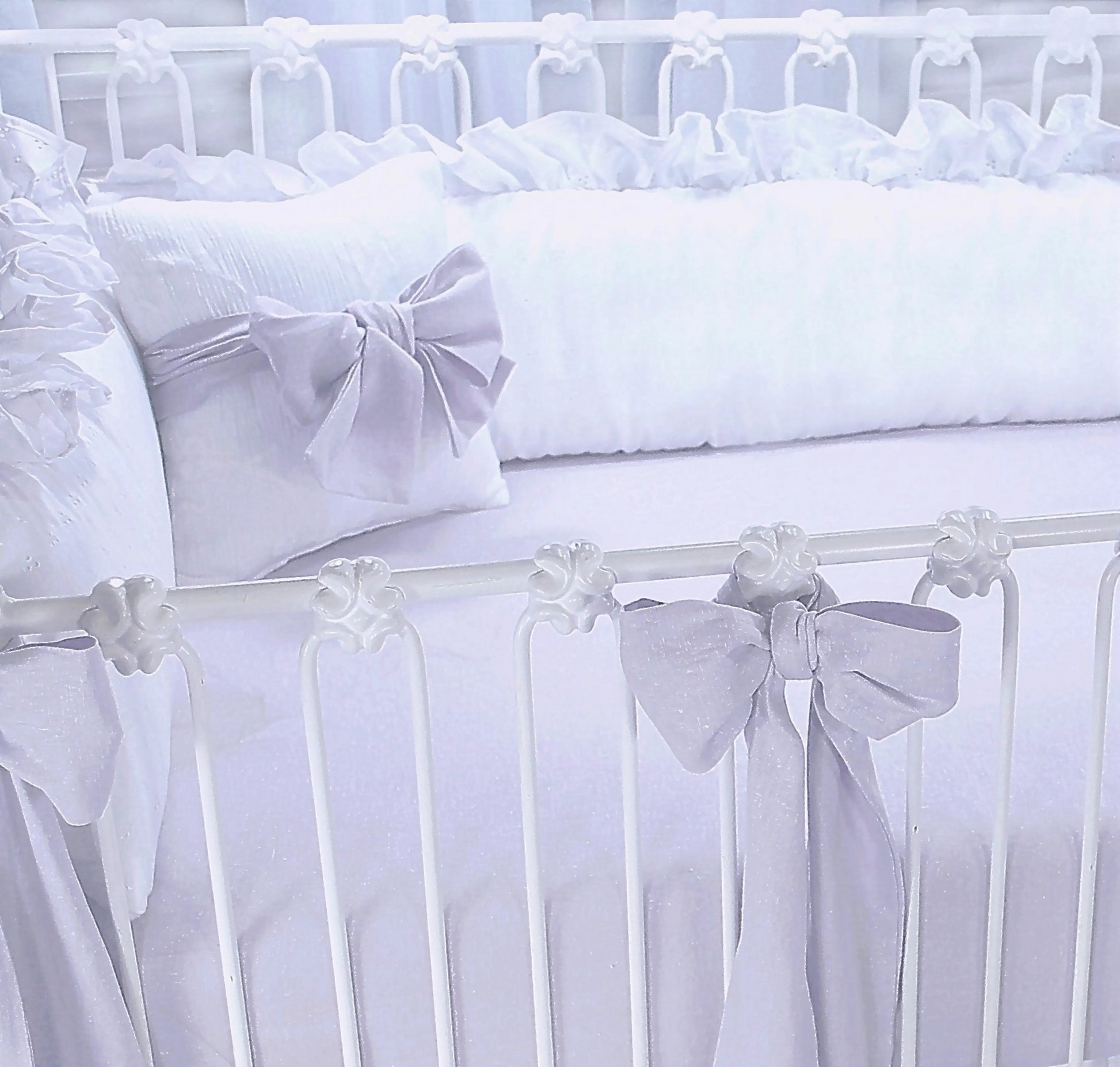 These cute Orchid Lavender Linen crib bows are part of the Orchid Lavender Linen collection. Handmade with stone washed linen, made in the USA.